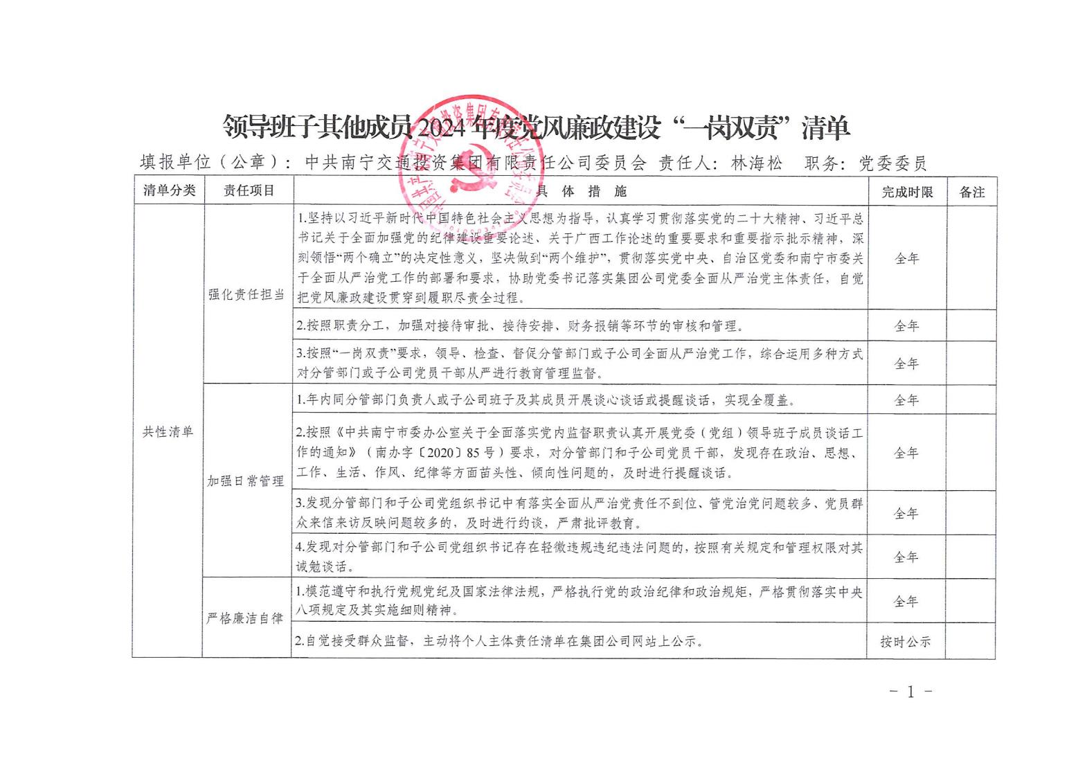 領(lǐng)導(dǎo)班子其他成員2024年度黨風(fēng)廉政建設(shè)“一崗雙責(zé)”清單(二)