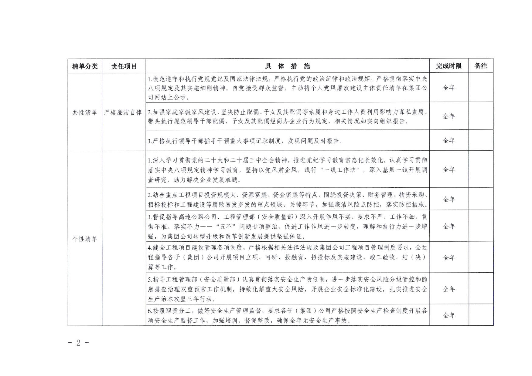 南寧交投集團(tuán)領(lǐng)導(dǎo)班子其他成員2025年度黨風(fēng)廉政建設(shè)“一崗雙責(zé)”清單(二)