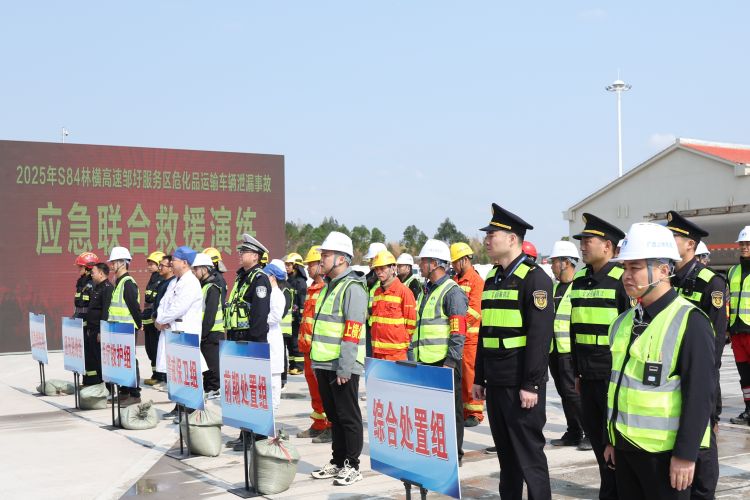 為全面提升林橫高速對服務(wù)區(qū)?;愤\輸泄漏突發(fā)事故的應(yīng)急處置能力,加強“一路多方”各部門間的協(xié)同配合,保障過往司乘生命財產(chǎn)安全,3月18日,南寧交投集團下屬南寧高速公司聯(lián)合賓陽縣應(yīng)急局、生態(tài)局、交警、消防救援大隊、衛(wèi)生局及區(qū)執(zhí)法局二支隊四大隊、六大隊等單位,在林橫高速鄒圩服務(wù)區(qū)開展?;愤\輸泄漏突發(fā)事故應(yīng)急聯(lián)合救援演練。