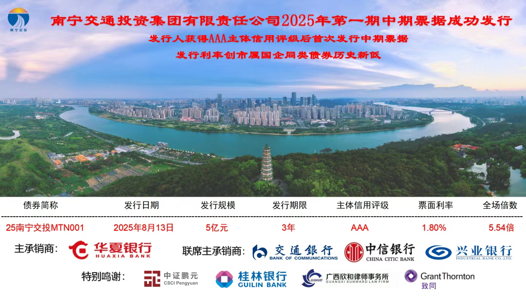 南寧交投集團成功發(fā)行2025年度第一期中期票據(jù)