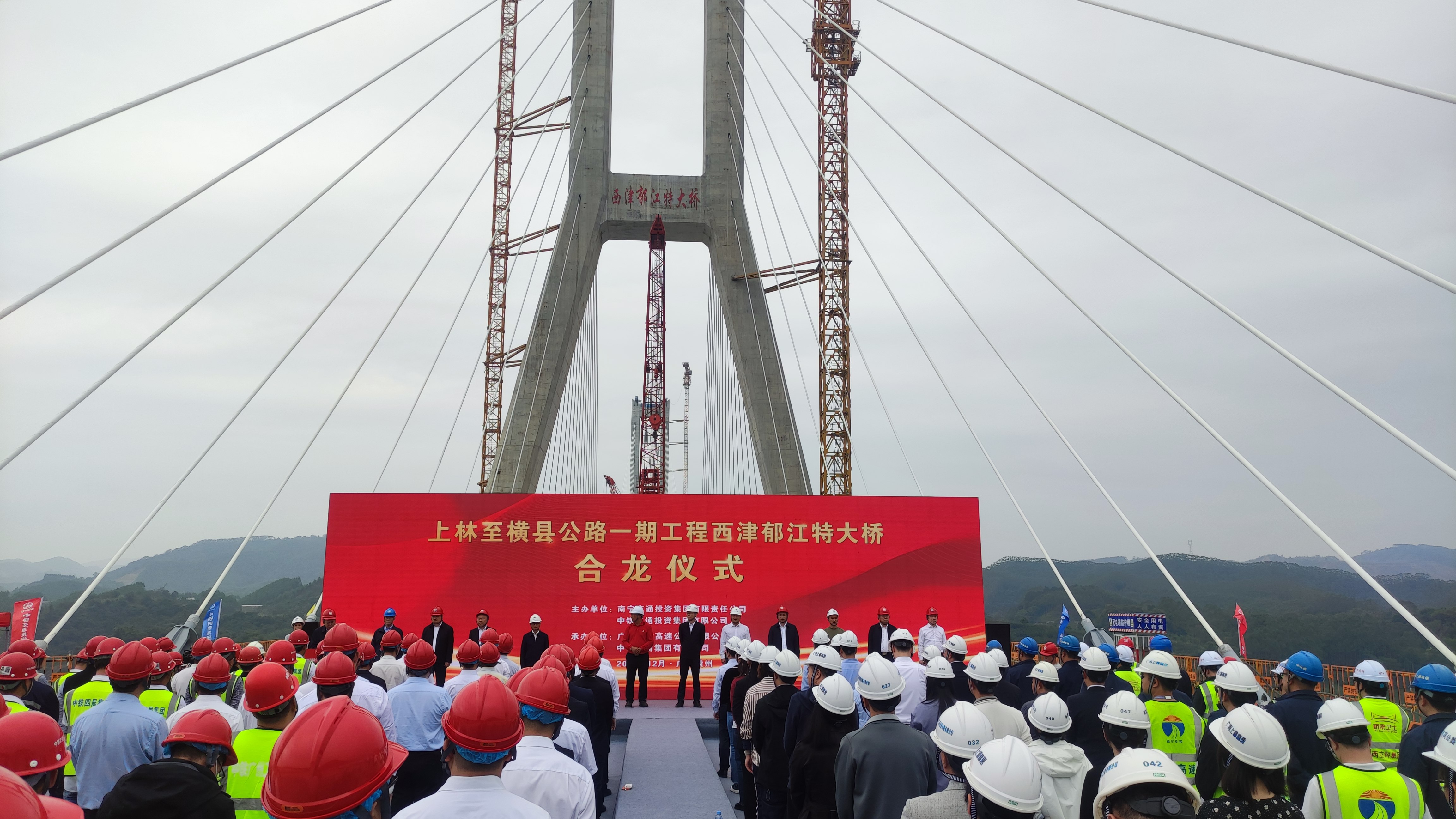 “牽手”成功!上橫高速西津郁江特大橋主跨合龍