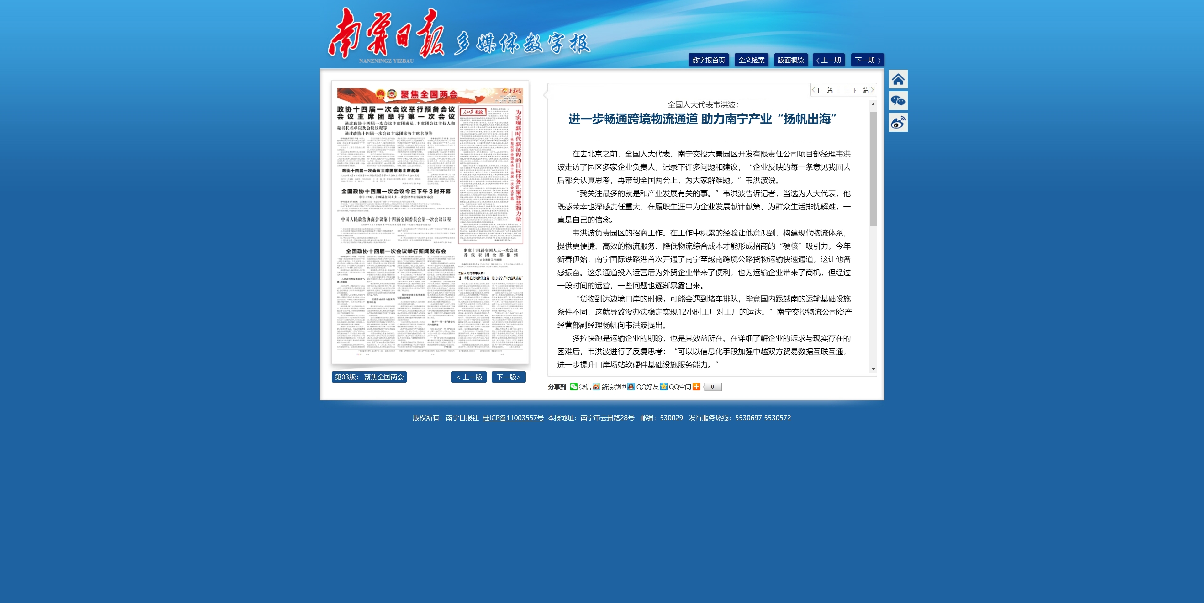 全國人大代表韋洪波:進(jìn)一步暢通跨境物流通道 助力南寧產(chǎn)業(yè)“揚帆出?!?/div>